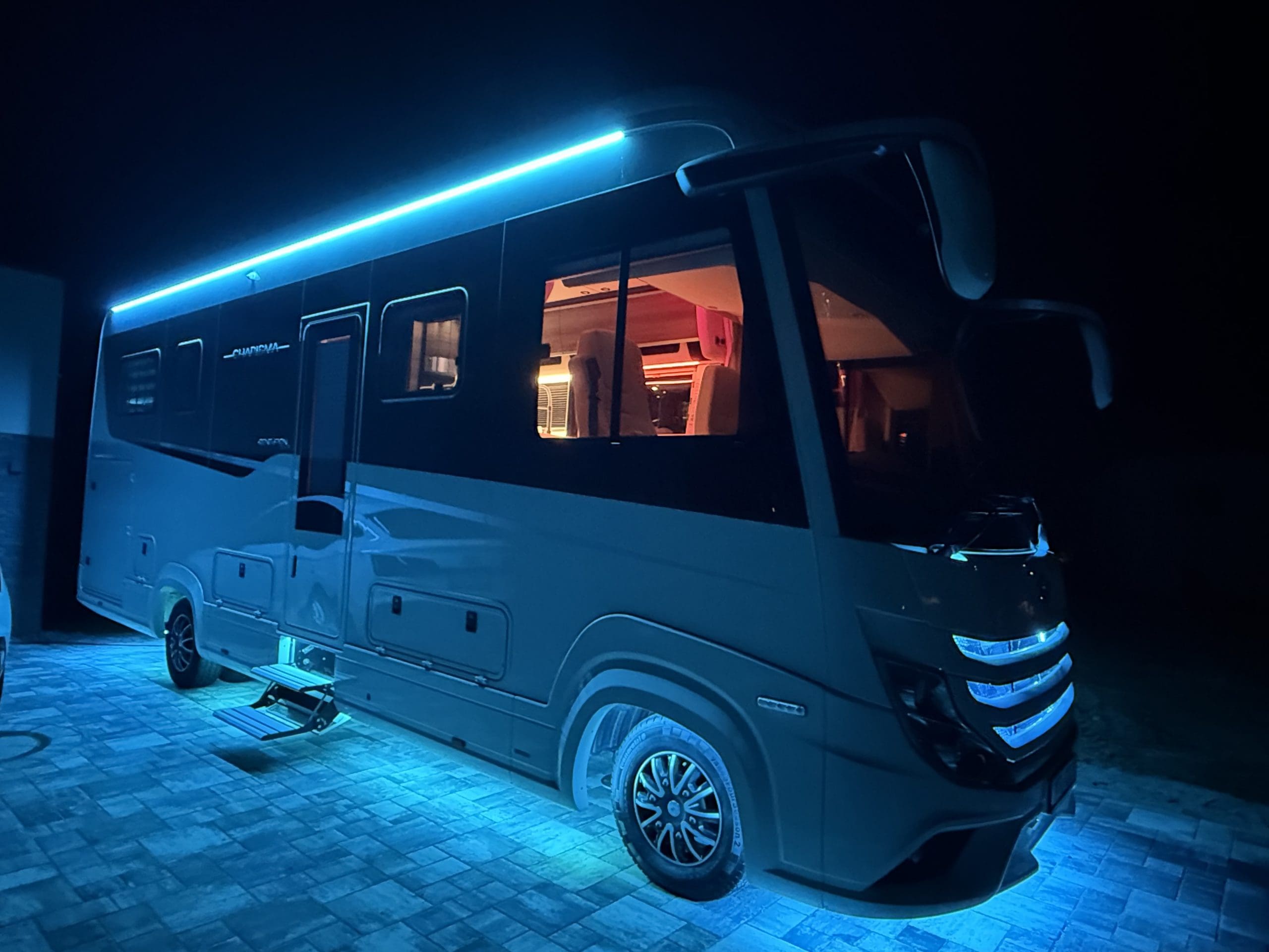 Elektrisches Sonnenrollo im Fahrerhaus Ambiente Beleuchtung Armaturenbrett