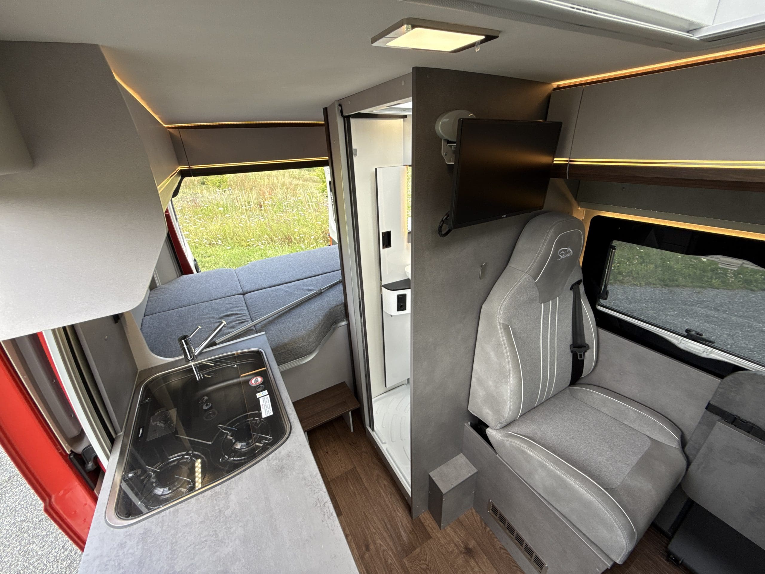 Ein Kastenwagen mit einer traumhaften Raumaufteilung und einer großen Dusche.